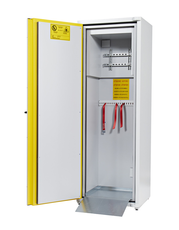 È possibile collegare gli armadi a un sistema di aspirazione con motore sempre attivo e filtro a carbone attivo, per il trattamento dei vapori emessi dalle bombole. Sono inoltre equipaggiati con staffe per l’ancoraggio e rampa metallica per agevolare il posizionamento delle bombole. I modelli sono predisposti per il passaggio di impianti gas e lo spazio per interruttori e centraline di distribuzione. Su richiesta, sono disponibili accessori come i contenitori per bombole di piccole dimensioni.