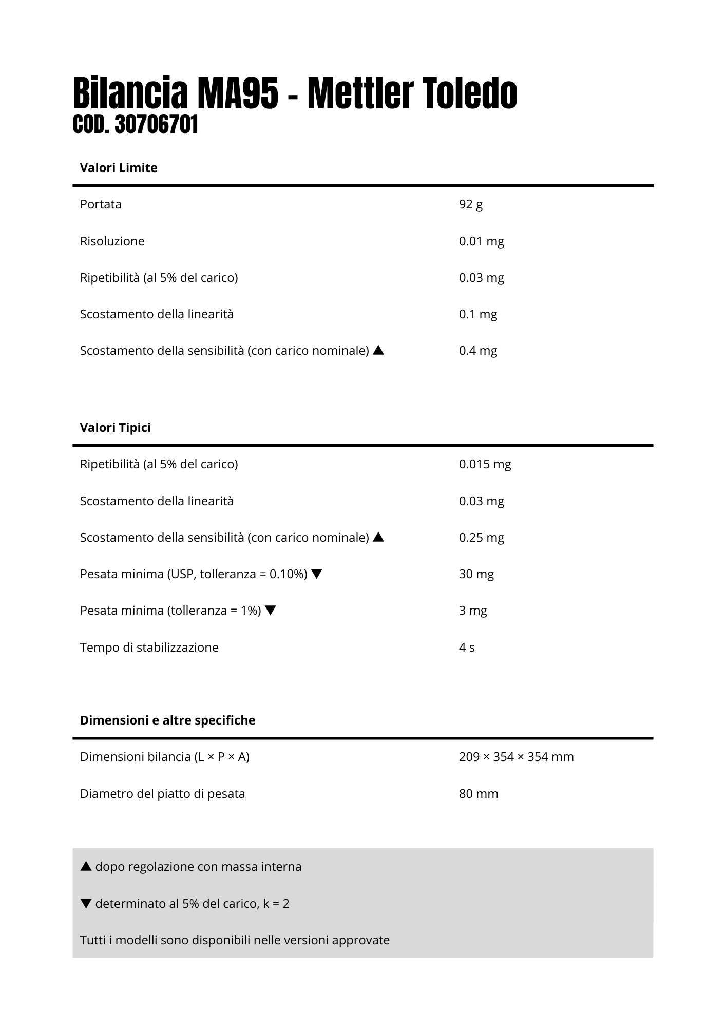 Bilancia analitica MA95 92 g 0,01 mg Cal. Interna METTLER TOLEDO