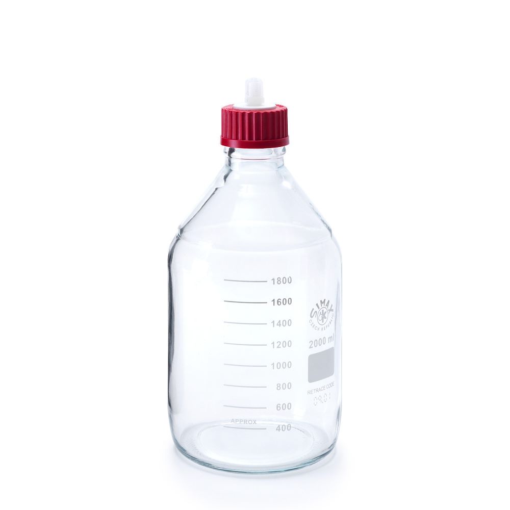 Bottiglia in vetro resistente per la raccolta sicura ed efficiente del solvente durante i processi di estrazione.