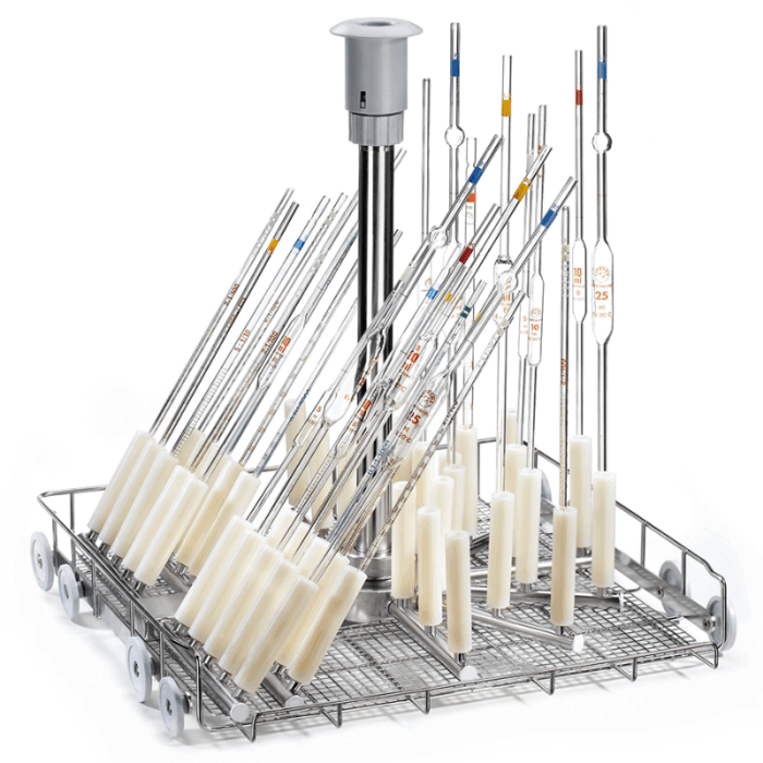 • adatto per il lavaggio di 20 pipette volumetriche altezza max 550 mm + 20 pipette standard altezza max 490 mm