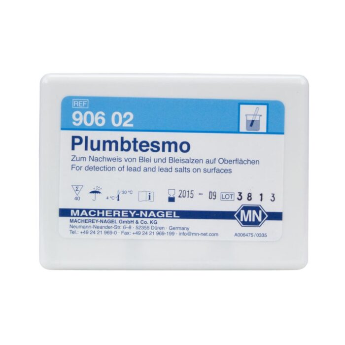 – Nota: per rivelare la presenza di piombo metallico o di sali di piombo su superfici (indagini criminali per tracce di proiettili) si inumidisce una cartina PLUMBTESMO con acqua distillata e la si preme per 1-2 minuti contro la superficie in esame. Forti quantità di piombo vengono rivelate immediatamente, mentre le tracce richiedono alcuni minuti.