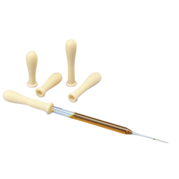 Gommini in lattice colore naturale, formato oliva con orletto, per pipette Pasteur.
