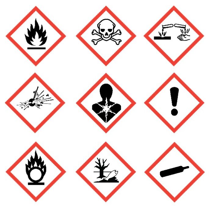 Etichette di pericolo GHS, auto-adesive, rotolo in scatola dispensatrice. Scatola dispensatrice da 250 etichette.Queste etichette sono prodotte usando un film in PE da 100 µm estremamente resistente. Grazie al loro speciale rivestimento superficiale sono resistenti a molti solventi ed eccellenti per uso interno o esterno. Il forte adesivo, anche se permanente, può essere rimosso da contenitori in vetro senza lasciare nessuna traccia. Scritte in tre lingue: tedesco, inglese, francese. .