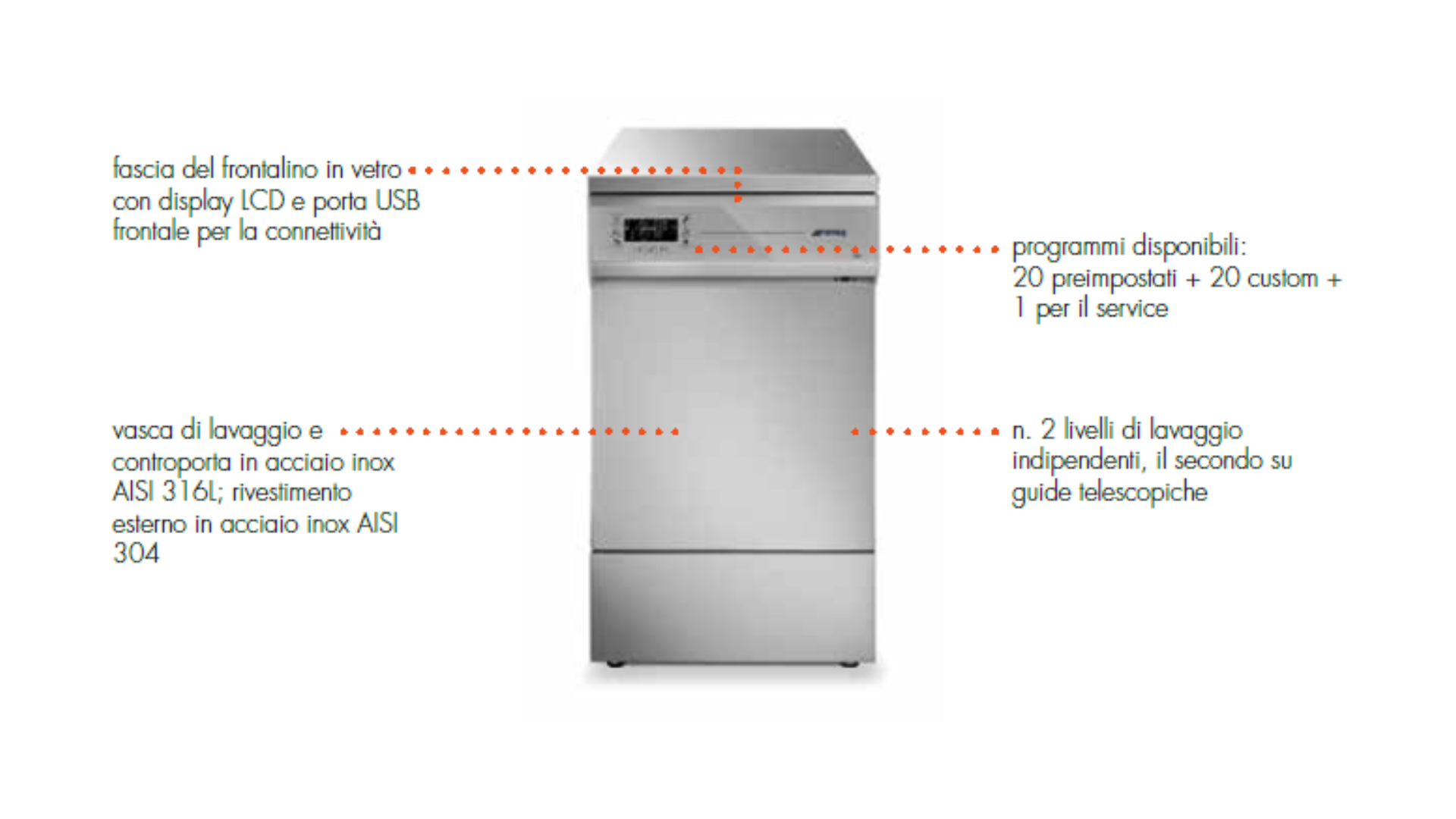Lavavetreria 45cm GW1245 CONCEPT c/porta in acciaio inox (GW1245-S0-100) SMEG