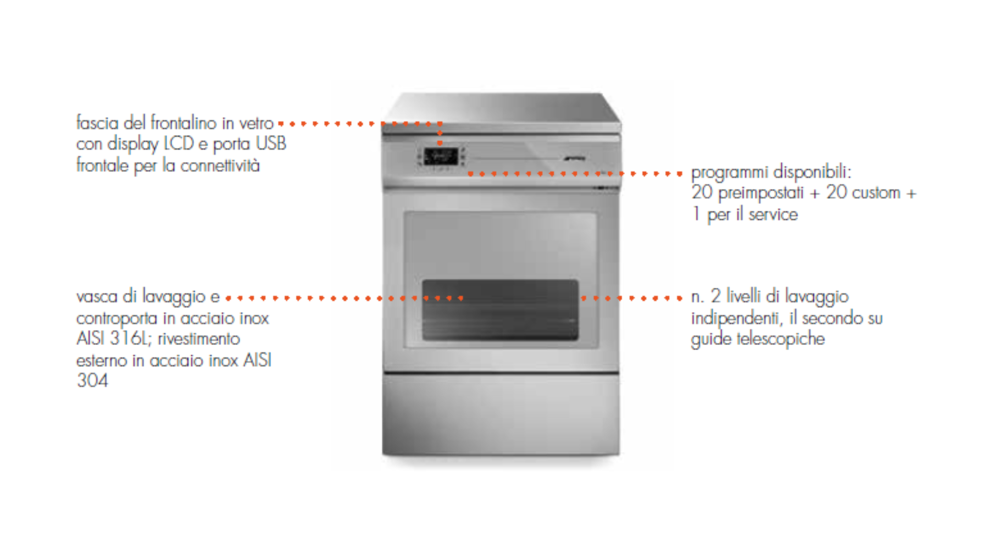 - n. 2 livelli di lavaggio indipendenti, il secondo su guide telescopiche