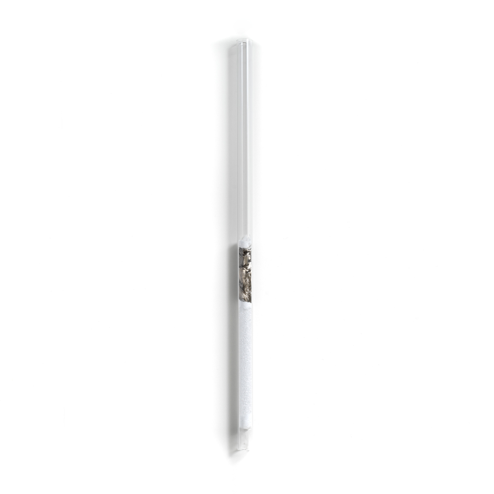 Reattore di pirolisi in quarzo preconfezionato contenente lana di nichel, lana di nichel e carbone e riempimenti in quarzo.