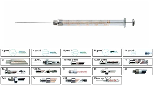 Le microsiringhe Hamilton sono siringhe di elevato standard qualitativo e tecnologico, sottoposte a severi controlli di qualità ad ogni passaggio di fabbricazione. Vengono prodotte in svariate serie, per essere utilizzate in qualsiasi genere di applicazione ove è previsto l' utilizzo della microsiringa. Le principali serie sono: Serie 700 – Siringhe per dosaggio di liquidi Serie1000/1700 – Siringhe per dosaggio di liquidi e di gas Serie 7000 – Siringhe per piccoli volumi Serie 1000/1700 LTN per una perfetta tenuta nel dosaggio di gas e liquidi. Corpo della siringa in vetro borosilicato e pistone rivestito PTFE (ad eccezione dei modelli 1705 e 1710). Punta Luer modificata e con ago fisso cementato.